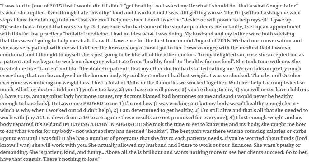 Don't submit yourself to invasive procedures, hormone injections and financial burdens without exploring a more natural, common sense apporach. Call our office today and schedule your consultation with Dr. Lawrence to find out if you are a good candidate for one of our neuro-metablic recovery programs. Call today (770) 237-5534 and speak to Nichole.